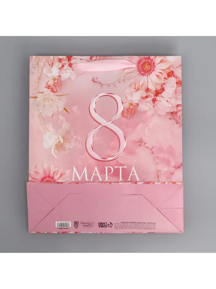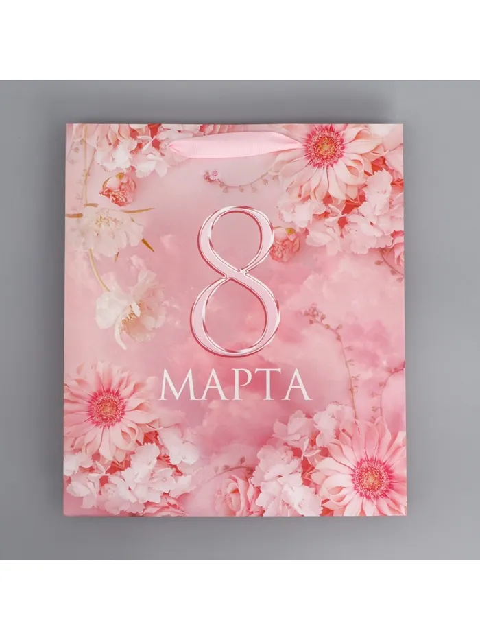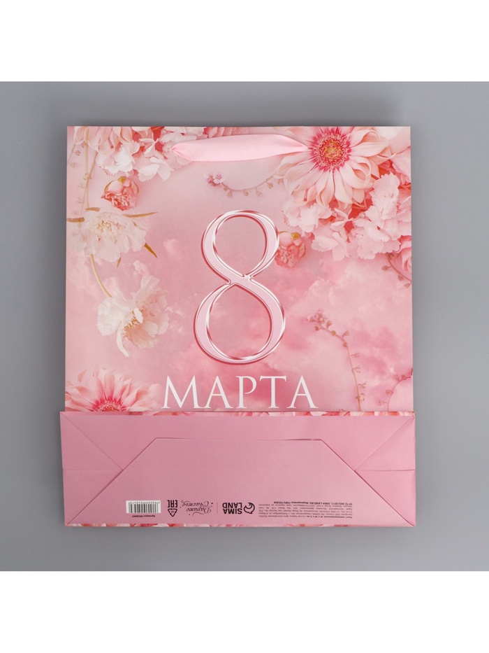 Пакет подарочный ламинированный, упаковка, «С 8 марта», цветы, M 30 х 26 х 9 см — Характеристики