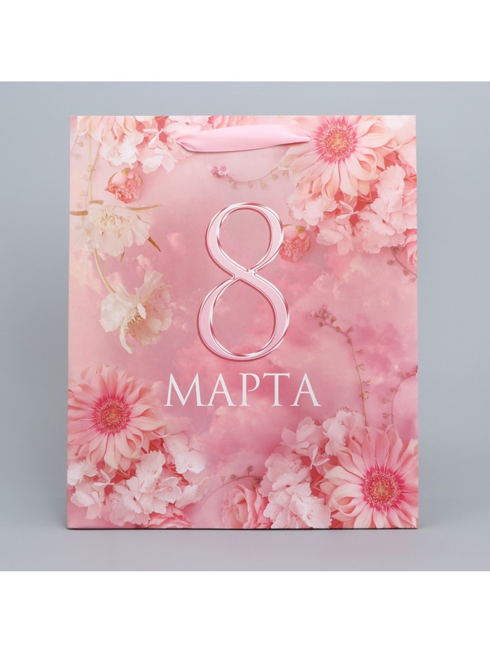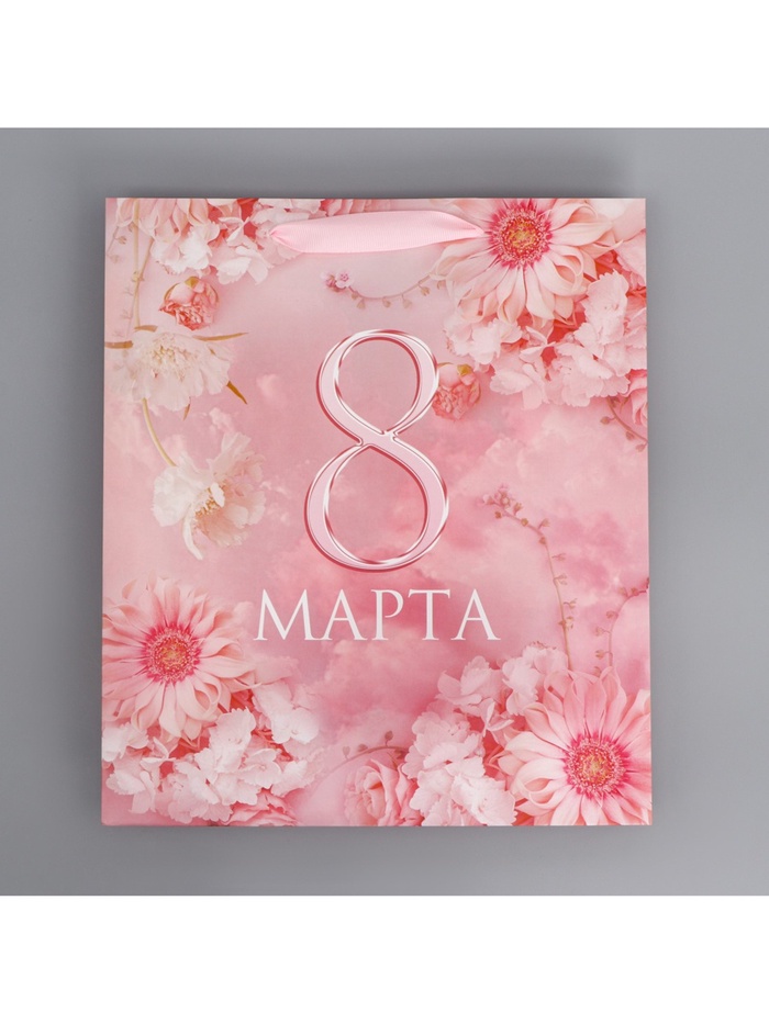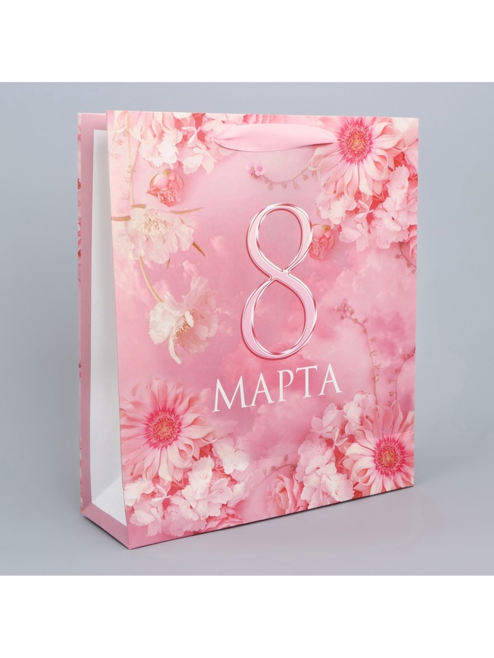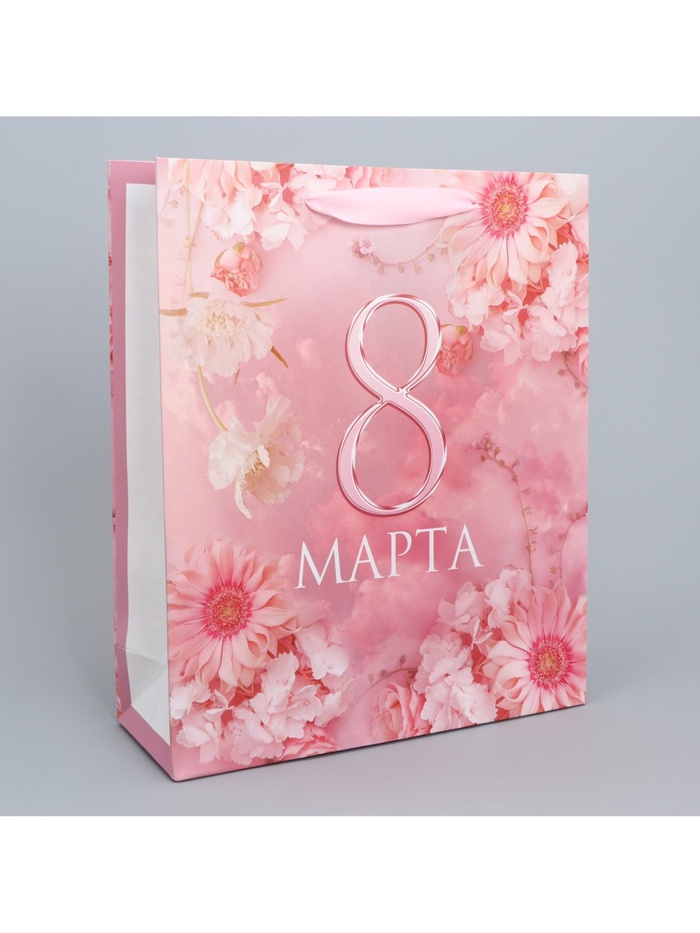 Пакет подарочный ламинированный, упаковка, «С 8 марта», цветы, M 30 х 26 х 9 см — Характеристики