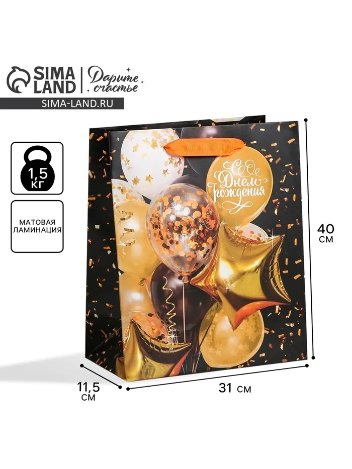 Пакет подарочный ламинированный, упаковка, «С Днем Рождения», L 31 х 40 х 11.5 см — Характеристики