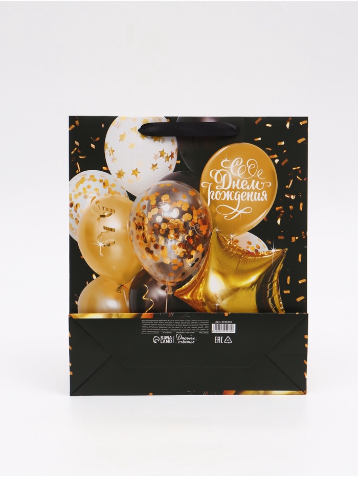Пакет подарочный ламинированный, упаковка, «С Днем Рождения», M 25.5×30×9 см — Характеристики