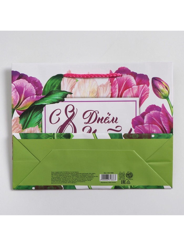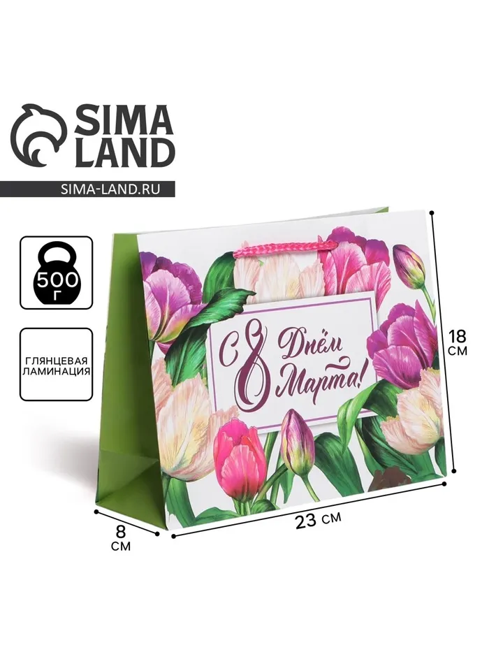 Пакет подарочный ламинированный, упаковка, «С днём 8 марта», MS 18 х 23 х 8 см — Характеристики