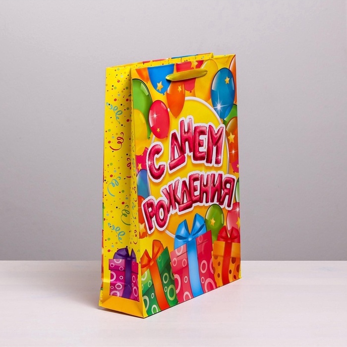 Пакет подарочный ламинированный, упаковка, «С днём Рождения», L 40×31×11.5 см — Характеристики