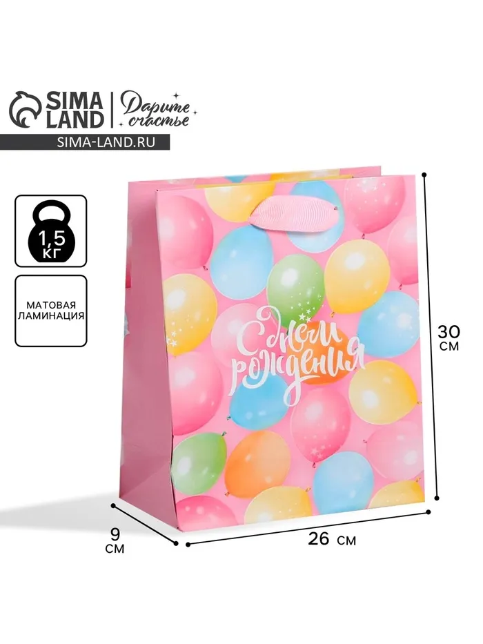 Пакет подарочный ламинированный, упаковка, «С днём рождения!», M 25.5 х 30 х 9 см — Характеристики