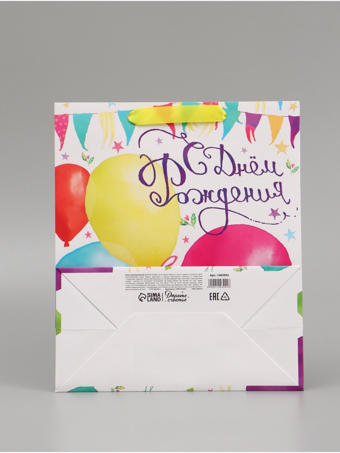 Пакет подарочный ламинированный, упаковка, «С Днём Рождения!», ML 23 х 27 х 11.5 см — Характеристики