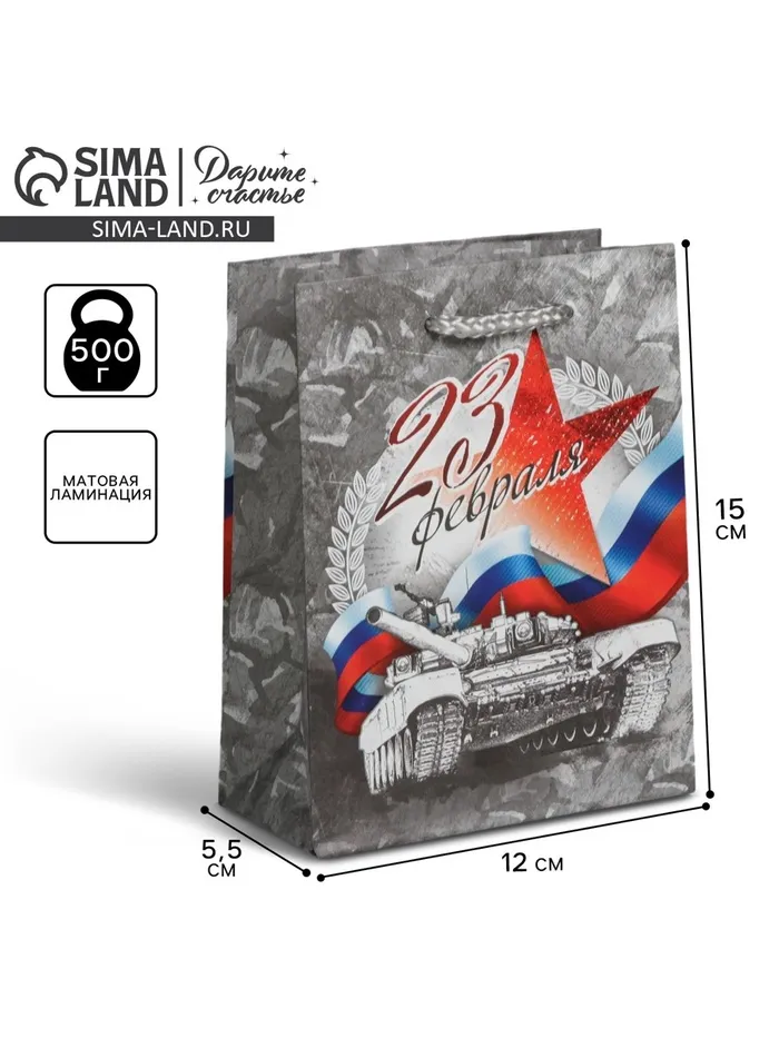 Пакет подарочный ламинированный, упаковка, «С Праздником 23 февраля!», S 12 х 15 х 5.5 см — Характеристики