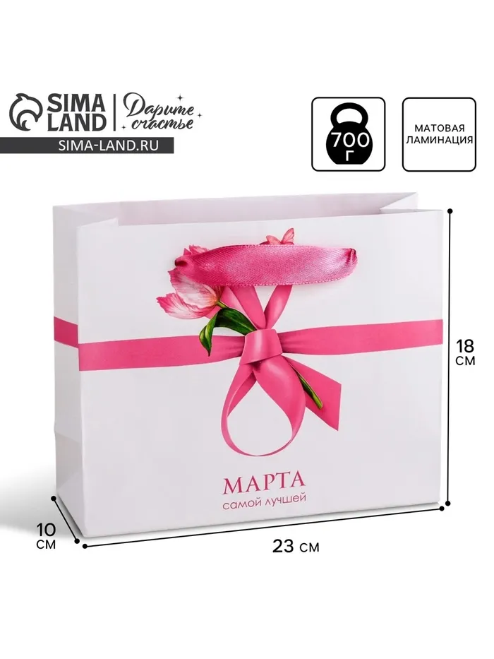 Пакет подарочный ламинированный, упаковка, «Самой лучшей 8 марта», MS 23 х 18 х 10 см — Характеристики