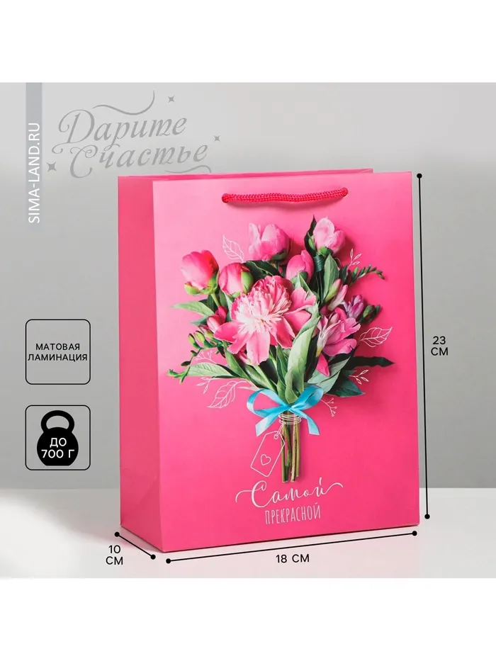 Пакет подарочный ламинированный, упаковка, «Самой прекрасной», MS 18 х 23 х 8 см — Характеристики