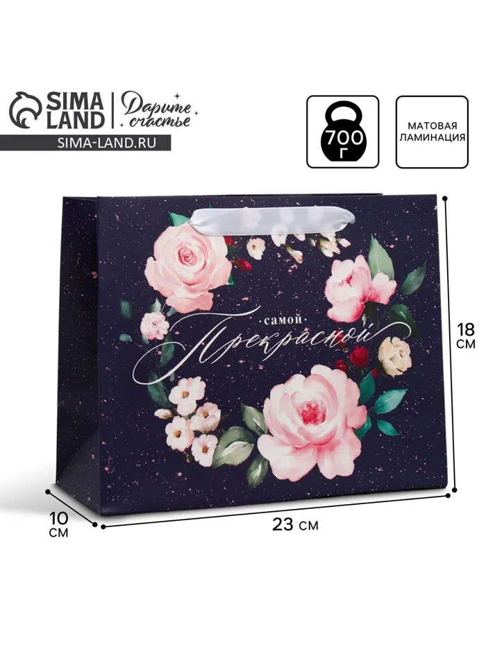 Пакет подарочный ламинированный, упаковка, «Самой Прекрасной», MS 23 х 18 х 8 см — Характеристики