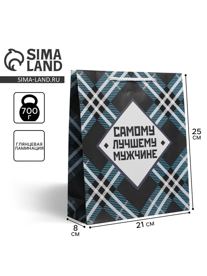 Пакет подарочный ламинированный, упаковка, «Самому лучшему мужчине», ML 21х 25 х 8 см — Характеристики