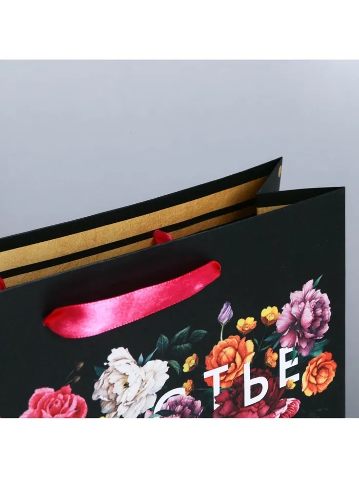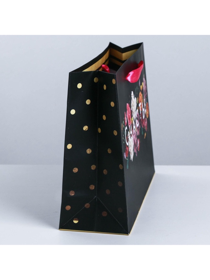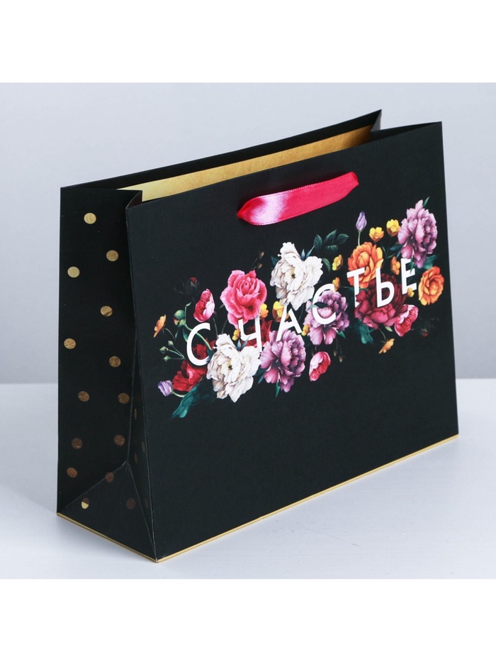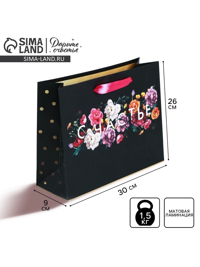 Пакет подарочный ламинированный, упаковка, «Счастье в мелочах», M 30 х 26 х 9 см — Характеристики