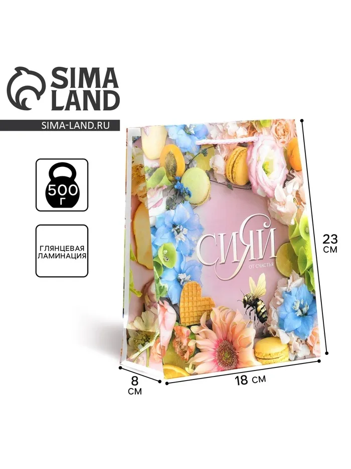 Пакет подарочный ламинированный, упаковка, «Счастье внутри», MS 18 х 23 х 8 см — Характеристики