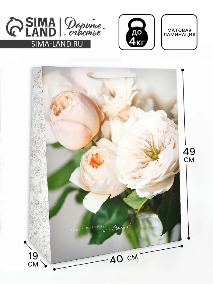 Пакет подарочный ламинированный, упаковка, «Счастья», XL 40 х 49 х 19 см — Характеристики