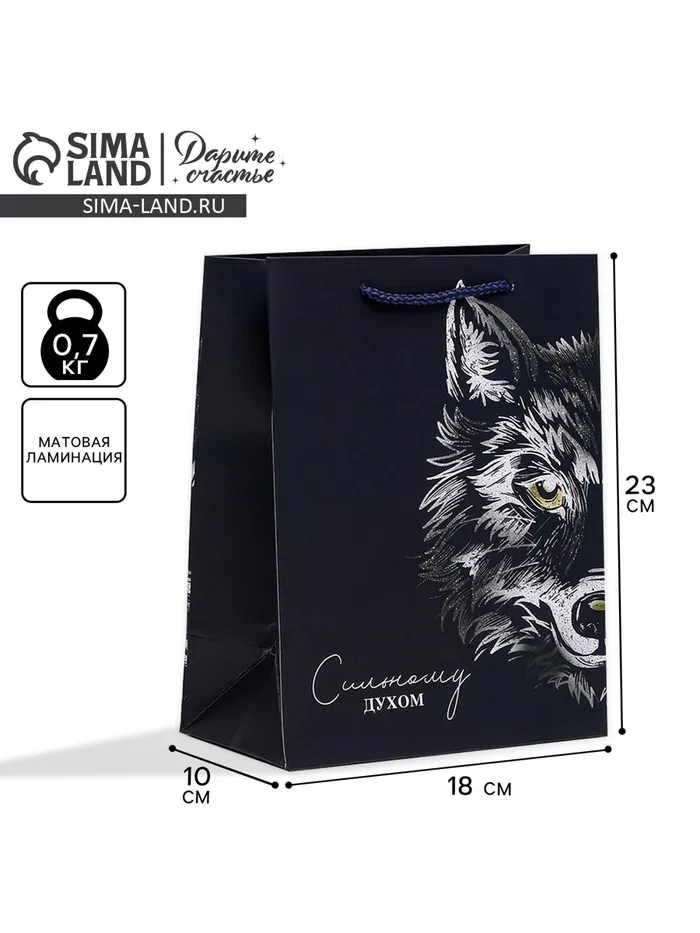 Пакет подарочный ламинированный, упаковка, «Сильному духом», MS 18 х 23 х 10 см — Характеристики