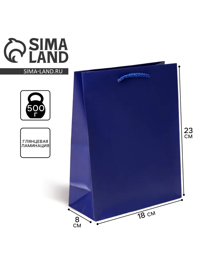 Пакет подарочный ламинированный, упаковка, «Синий», MS 18 х 23 х 8 см — Характеристики
