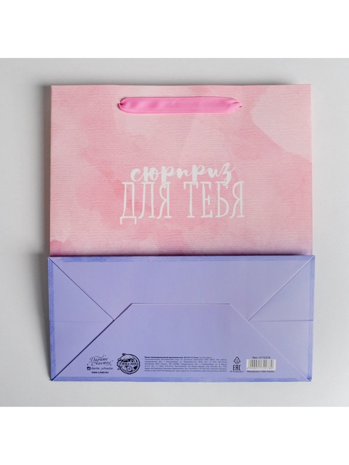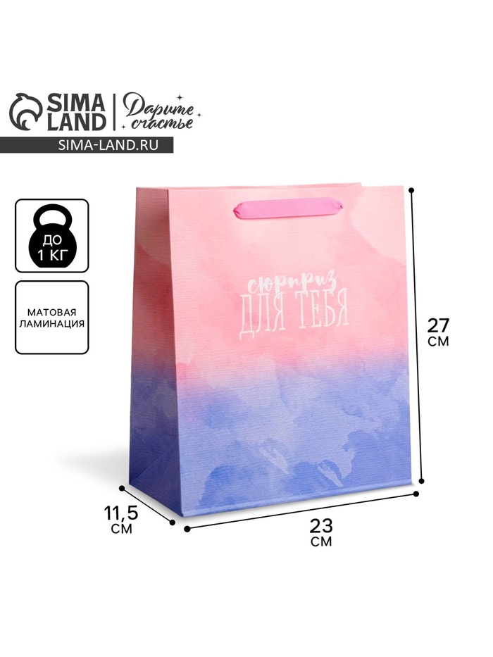 Пакет подарочный ламинированный, упаковка, «Сюрприз для тебя», ML 23 х 27 х 11.5 см — Характеристики