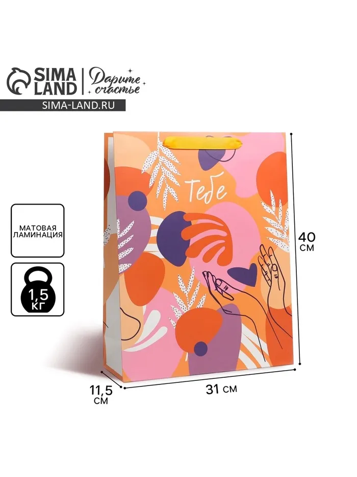 Пакет подарочный ламинированный, упаковка, «Тебе», L 31 х 40 х 11.5 см — Характеристики