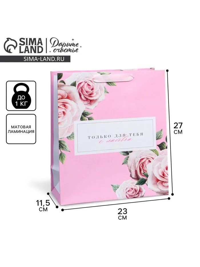 Пакет подарочный ламинированный, упаковка, «Только для тебя с любовью», ML 23 х 27 х 11.5 см — Характеристики