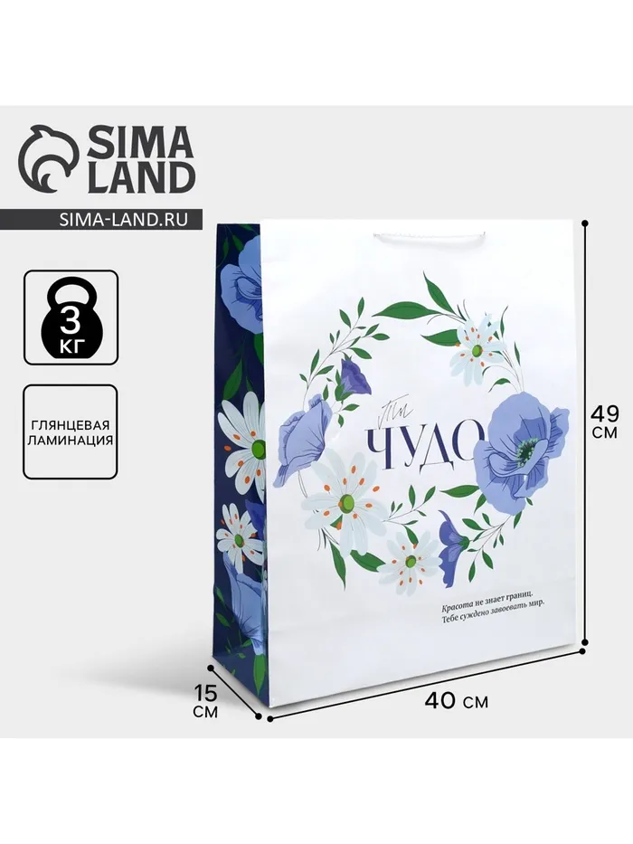 Пакет подарочный ламинированный, упаковка, «Ты чудо», 40 х 49 х 15 см — Характеристики