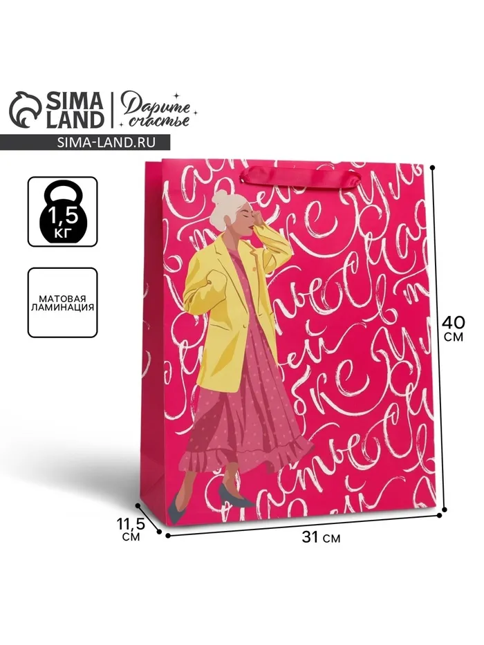 Пакет подарочный ламинированный, упаковка, «Улыбка», L 31 х 40 х 11.5 см — Характеристики