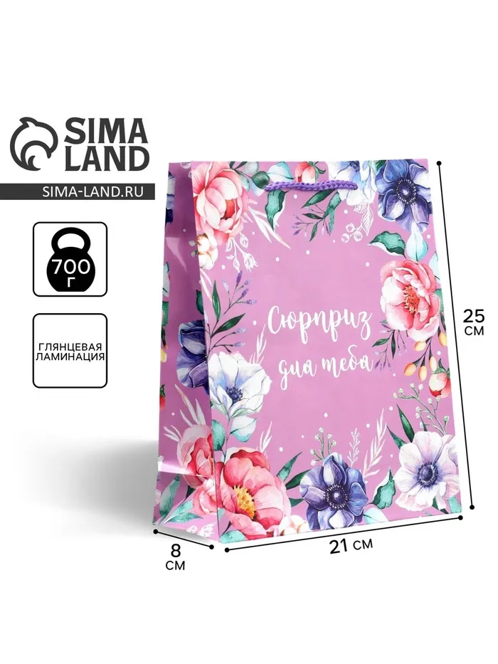 Пакет подарочный ламинированный, упаковка, With great love, ML 21 х 25 х 8 см — Характеристики