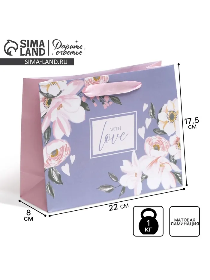 Пакет подарочный ламинированный, упаковка, «With love», 22 х 17.5 х 8 см — Характеристики