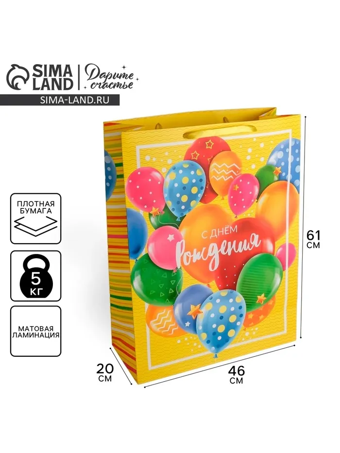 Пакет подарочный ламинированный, упаковка, XXL «С Днём Рождения!», 61 х 46 х 20 см — Характеристики
