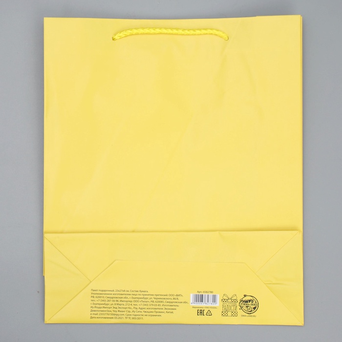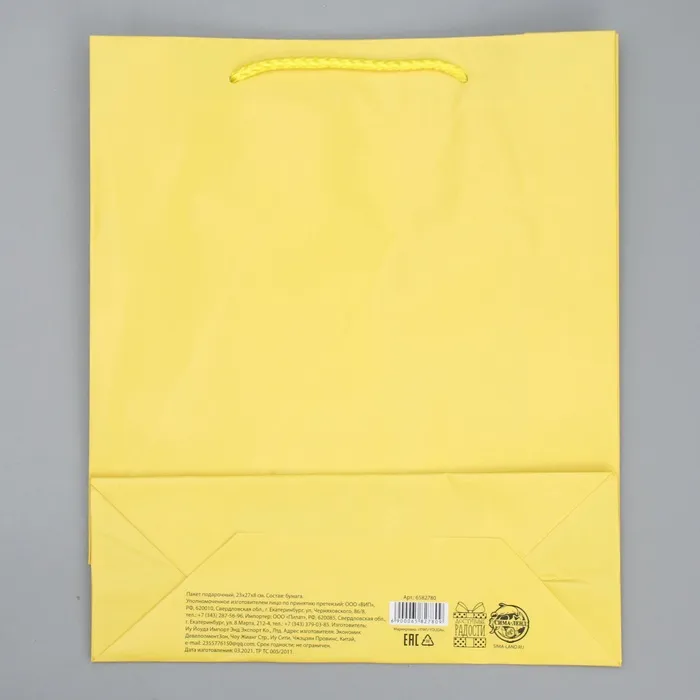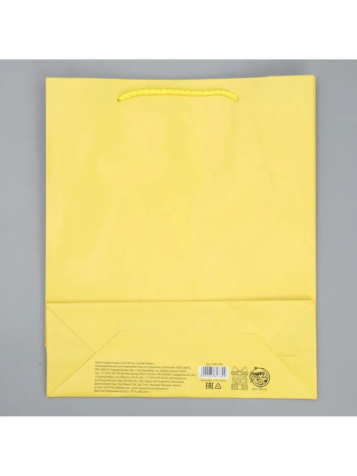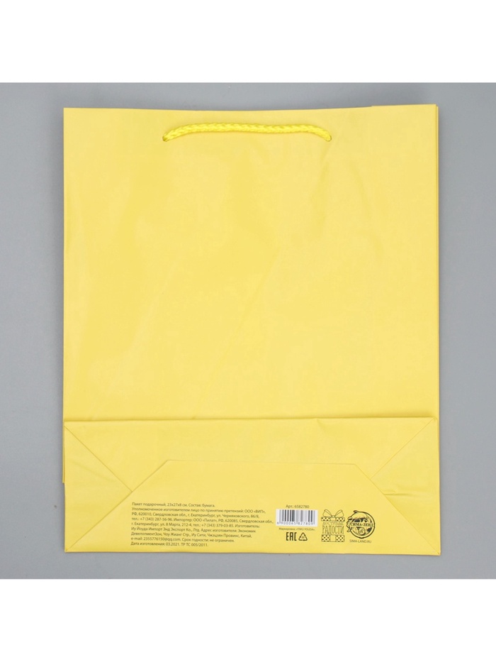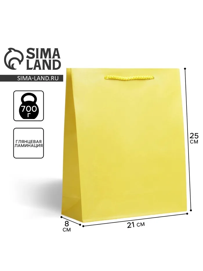 Пакет подарочный ламинированный, упаковка, «Жёлтый», ML 21 х 25 х 8 см — Характеристики