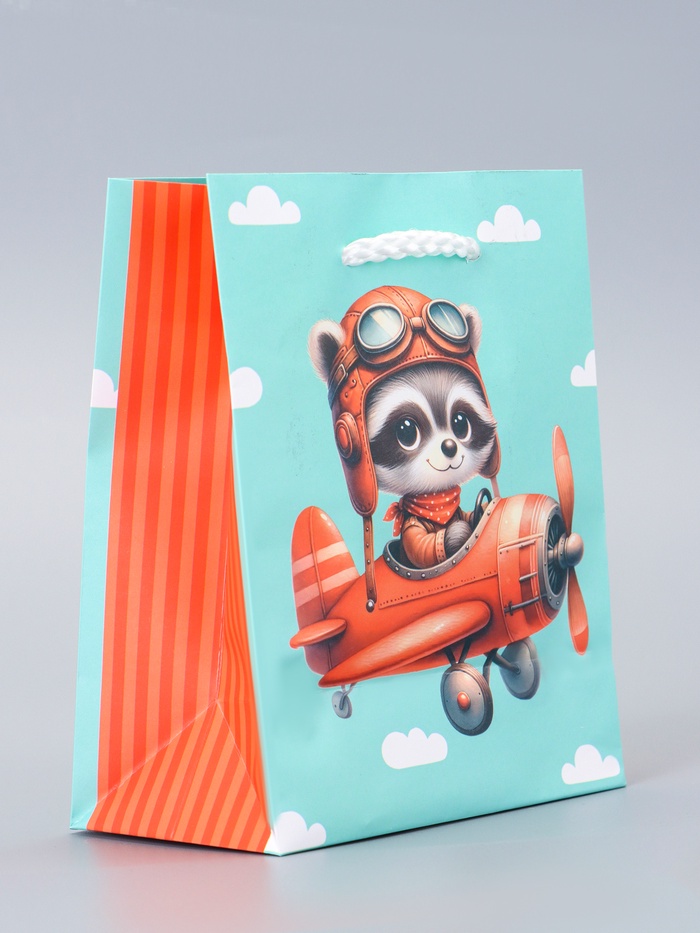 Подарочный пакет «В полете» малый – это компактная упаковка с авиационной тематикой для небольших подарков мальчикам и молодежи. Пакет создает атмосферу свободы и воздушных приключений.