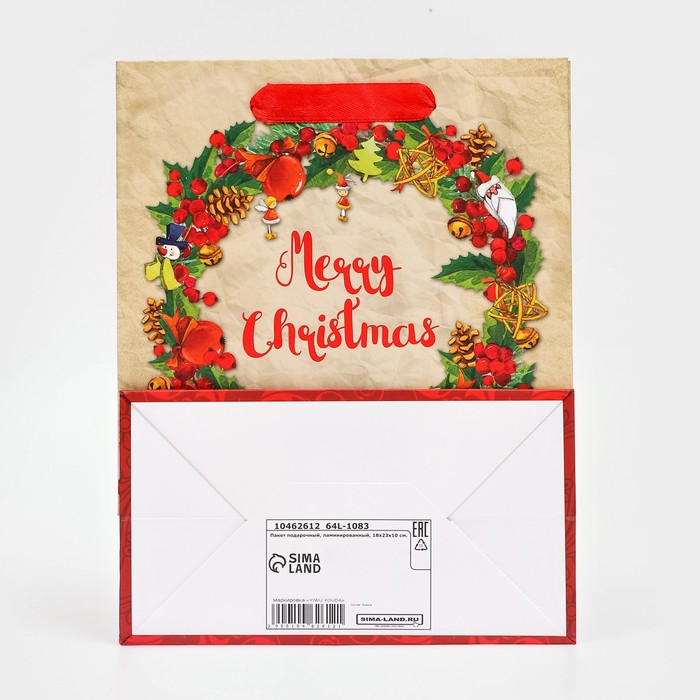 Пакет подарочный, ламинированный, «Венок»,18×23×10 см — Характеристики