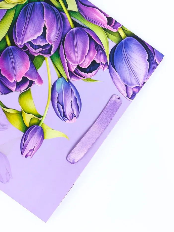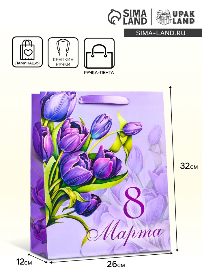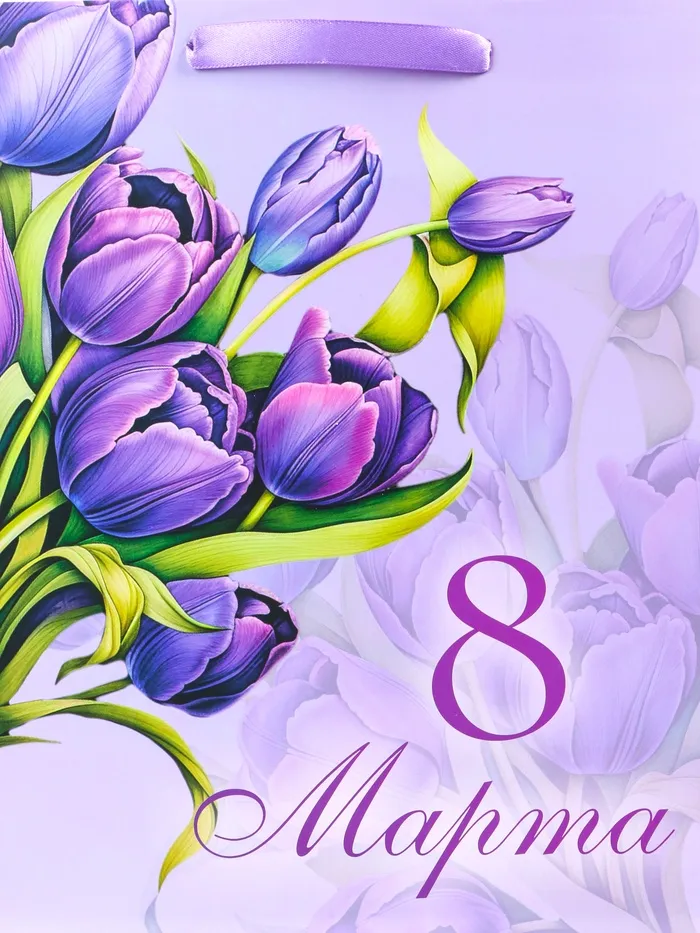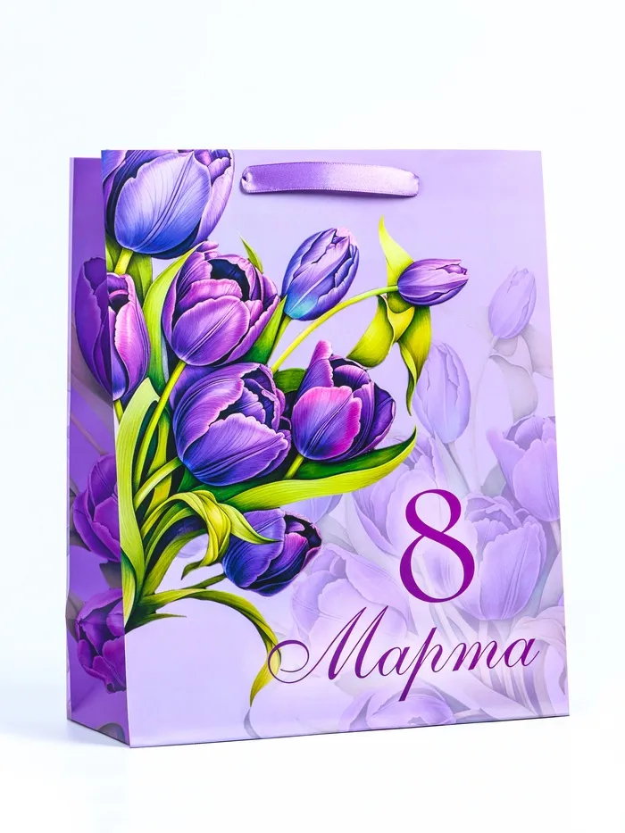 Этот яркий и праздничный подарочный пакет станет идеальным выбором для поздравления девушки на 8 Марта! Вертикальный формат пакета позволяет удобно разместить различные виды подарков, такие как косметика, украшения или книги.