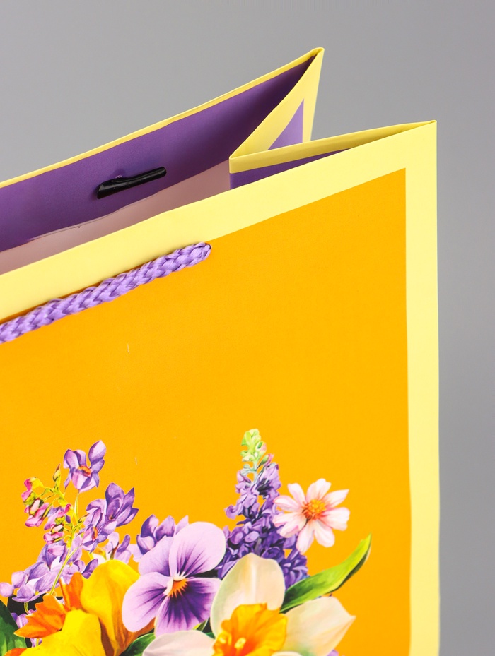 - Длинные ручки-шнуры: Удобные для переноски, они позволяют легко донести даже крупный и не самый лёгкий подарок.
