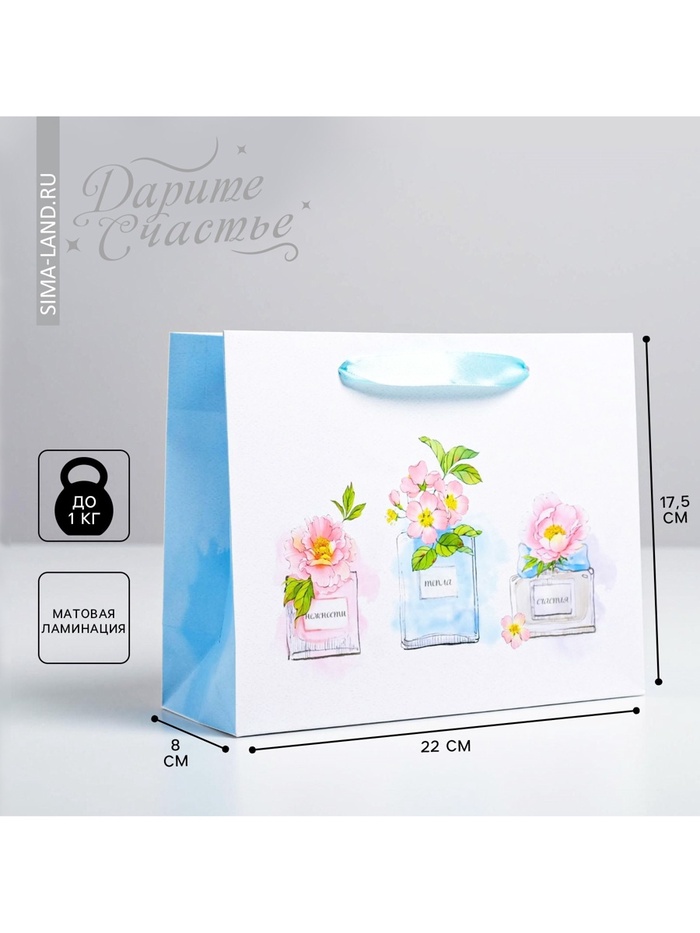 Пакет подарочный ламинированный вертикальный «Мир фиалок», 18×22.3×10 см — Характеристики