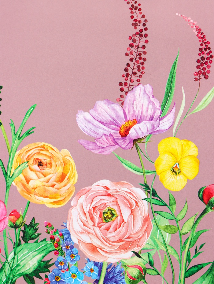 - Универсальный цветочный орнамент: Рисунок из роз и листьев на розовом фоне создаёт нежное, праздничное настроение. Такой принт подходит для подарков женщинам любого возраста.