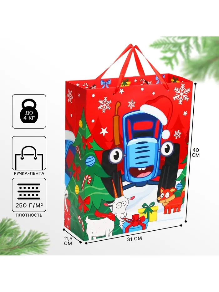 Пакет подарочный ламинированный «Весёлого Нового Года», 31 х 40 х 11.5 см, Синий трактор — Характеристики