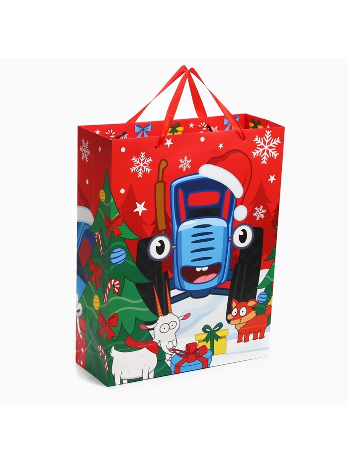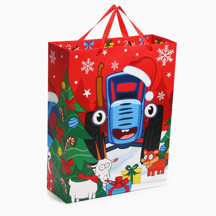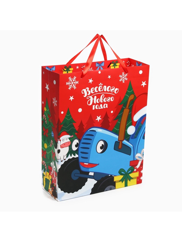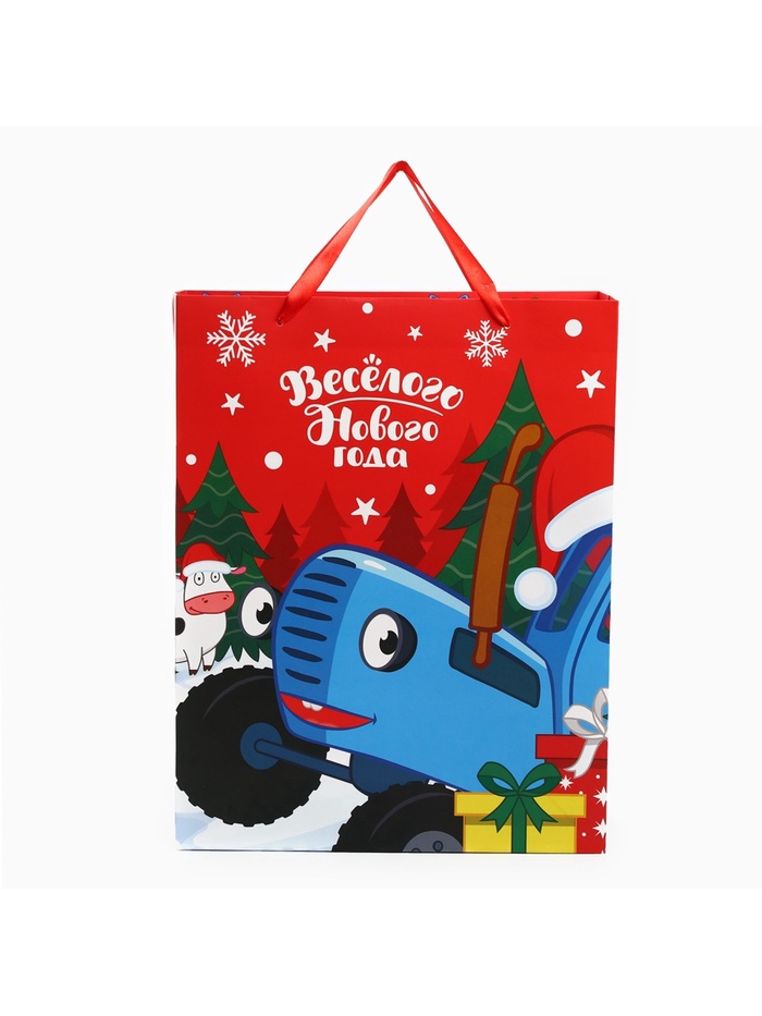 Пакет подарочный ламинированный «Весёлого Нового Года», 31 х 40 х 11.5 см, Синий трактор — Характеристики