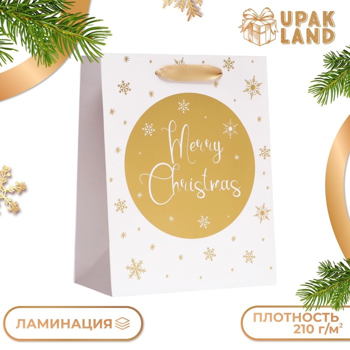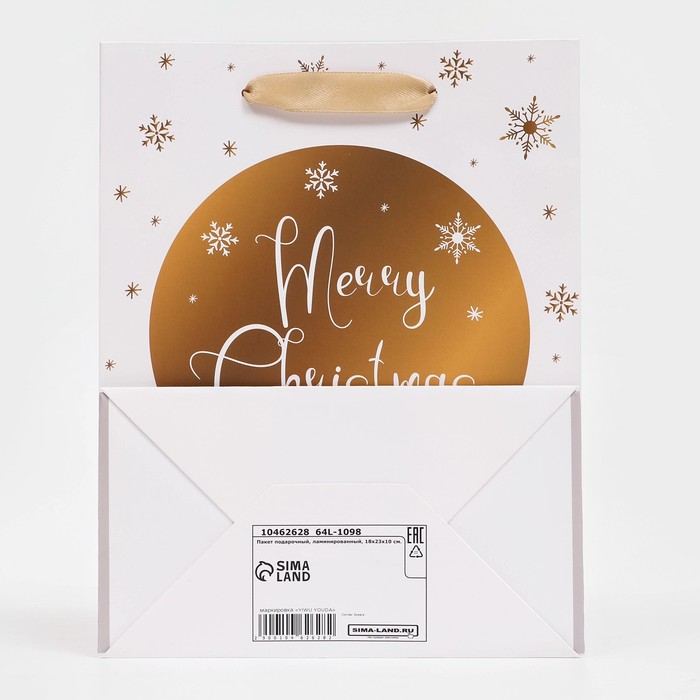 Пакет подарочный, ламинированный, «Золотые снежинки»,18×23×10 см — Характеристики