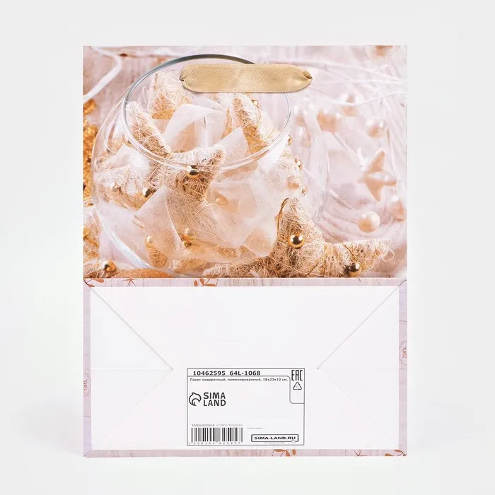 Пакет подарочный, ламинированный,«Золото»,18×23×10 см — Характеристики