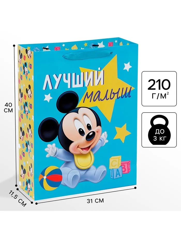 Пакет подарочный «Лучший малыш», 31 х 40 х 11.5 см, упаковка, Микки Маус — Характеристики