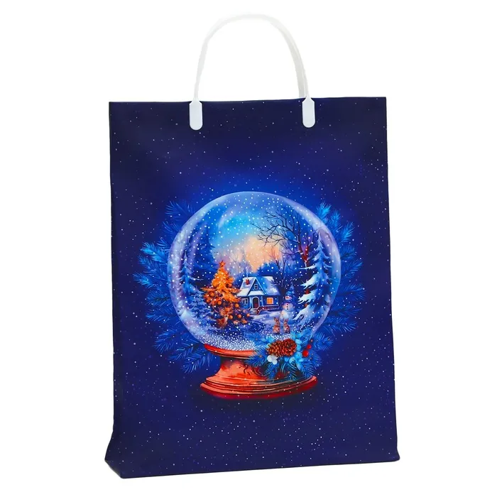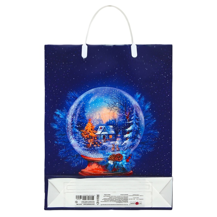 Праздничный дизайн с яркими новогодними элементами, такими как снежинки, ёлочные игрушки и зимние пейзажи, создаст особую атмосферу ожидания чуда и уюта. Удобные ручки-сумка обеспечивают комфорт при переноске, а вместительный размер позволяет легко упаковать и транспортировать даже крупные подарки.