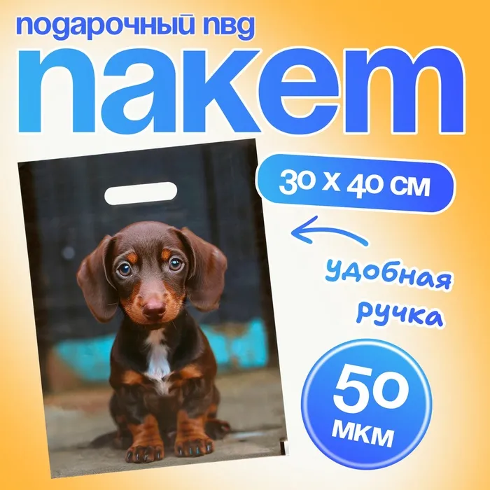 Пакет подарочный «Милая такса», полиэтиленовый с вырубной ручкой, 30×40 см 50 мкм — Характеристики