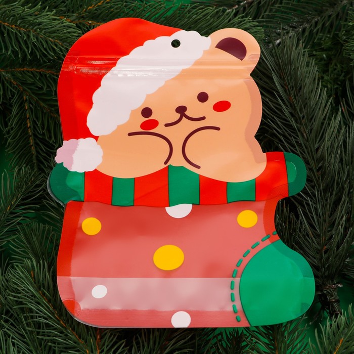 Пакет подарочный, «Мишка с колпаком», с zip - lock застежкой, 21×15.5 см