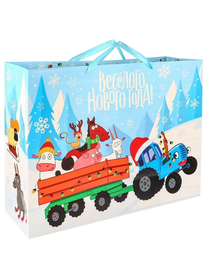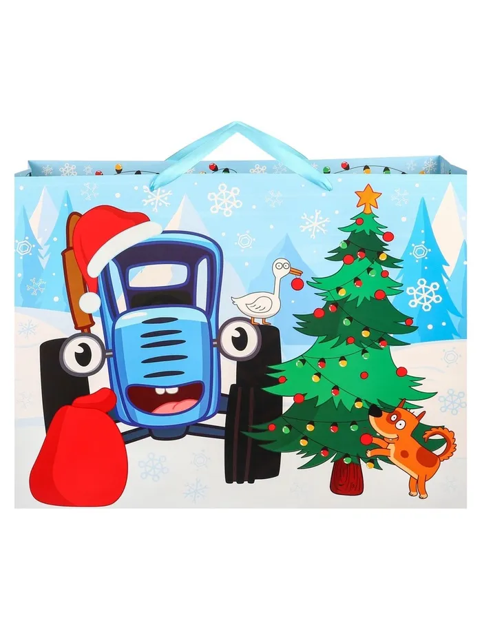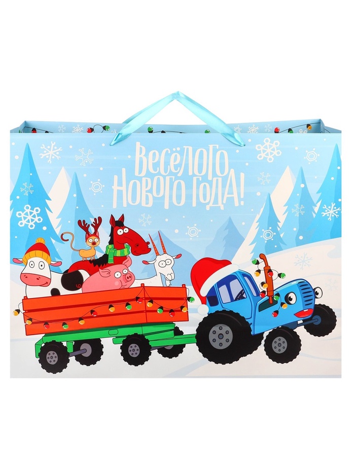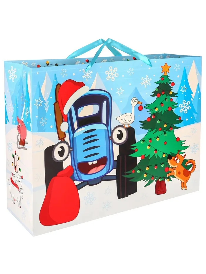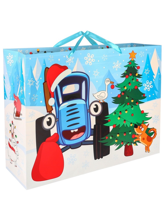 Пакет подарочный на Новый год, 61 х 40 х 20 см, упаковка, Синий трактор — Характеристики