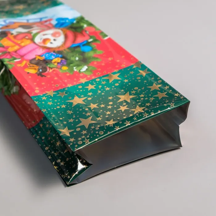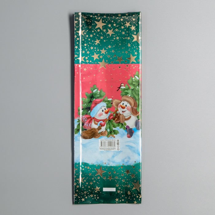 Новогодний подарочный пакет с ярким, красочным рисунком создаст праздничное настроение.