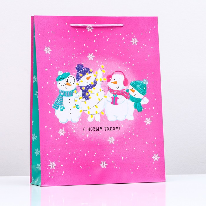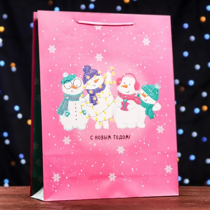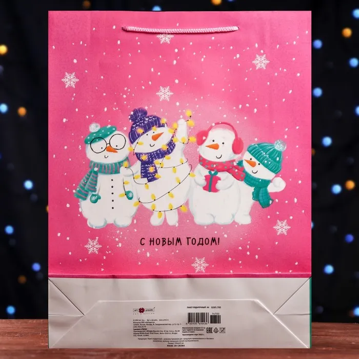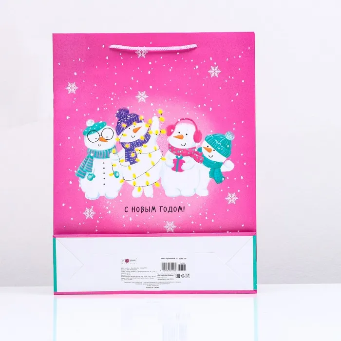 Новогодний подарочный пакет с ярким, красочным рисунком создаст праздничное настроение.