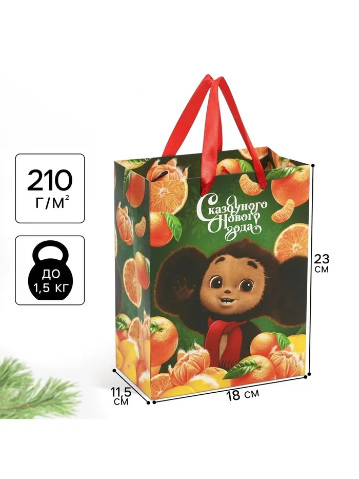 Пакет подарочный новогодний, 18 х 23 х 11.5 см, упаковка, Чебурашка — Характеристики