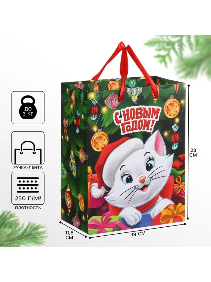 Пакет подарочный новогодний, 18 х 23 х 11.5 см, упаковка, Коты Аристократы — Характеристики