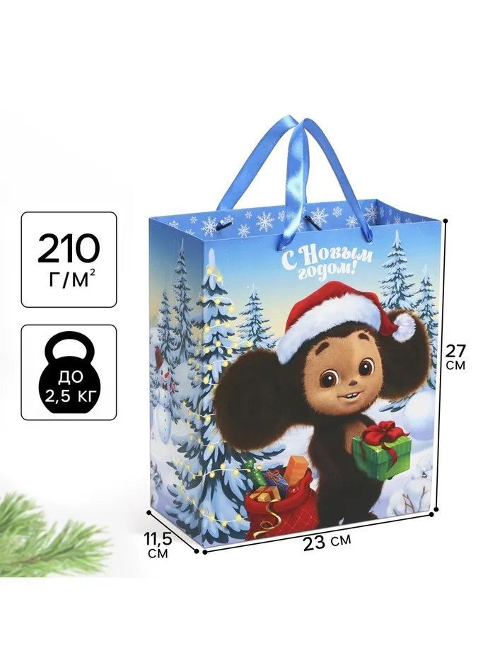Пакет подарочный новогодний, 23 х 27 х 11.5 см, упаковка, Чебурашка — Характеристики