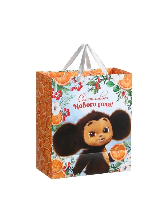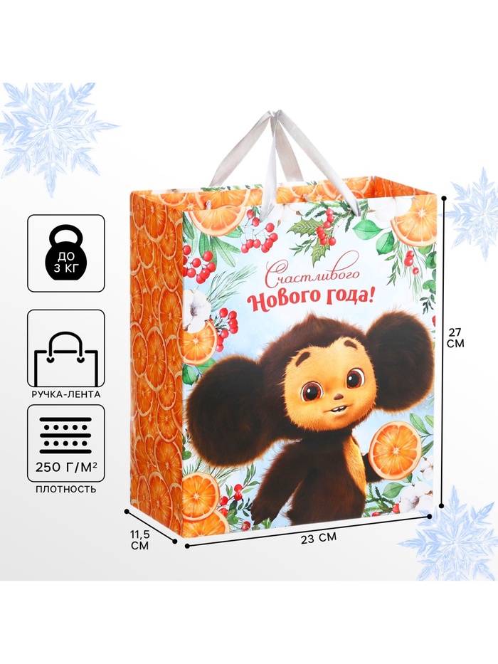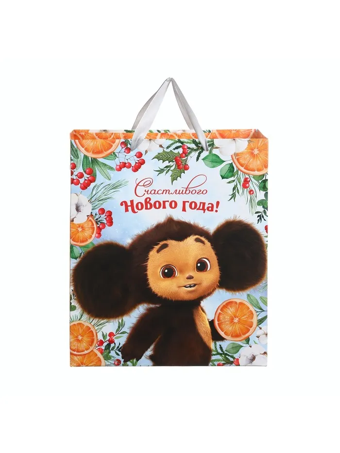 Пакет подарочный новогодний, 23х27х11.5 см, упаковка, Чебурашка — Характеристики