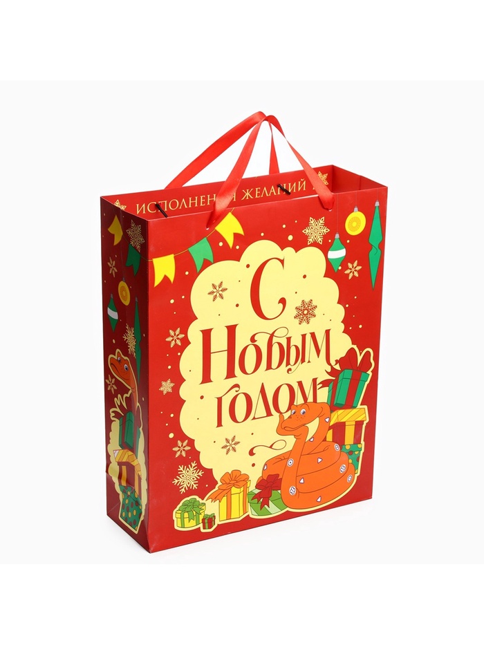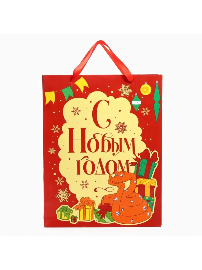 Пакет подарочный новогодний 31 х 40 х 11.5 см, Символ года 2025, 38 попугаев — Характеристики