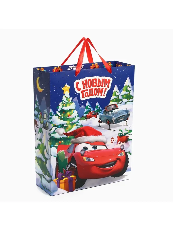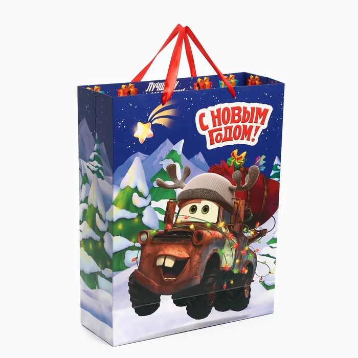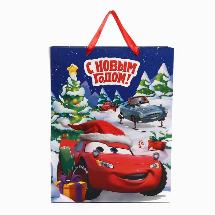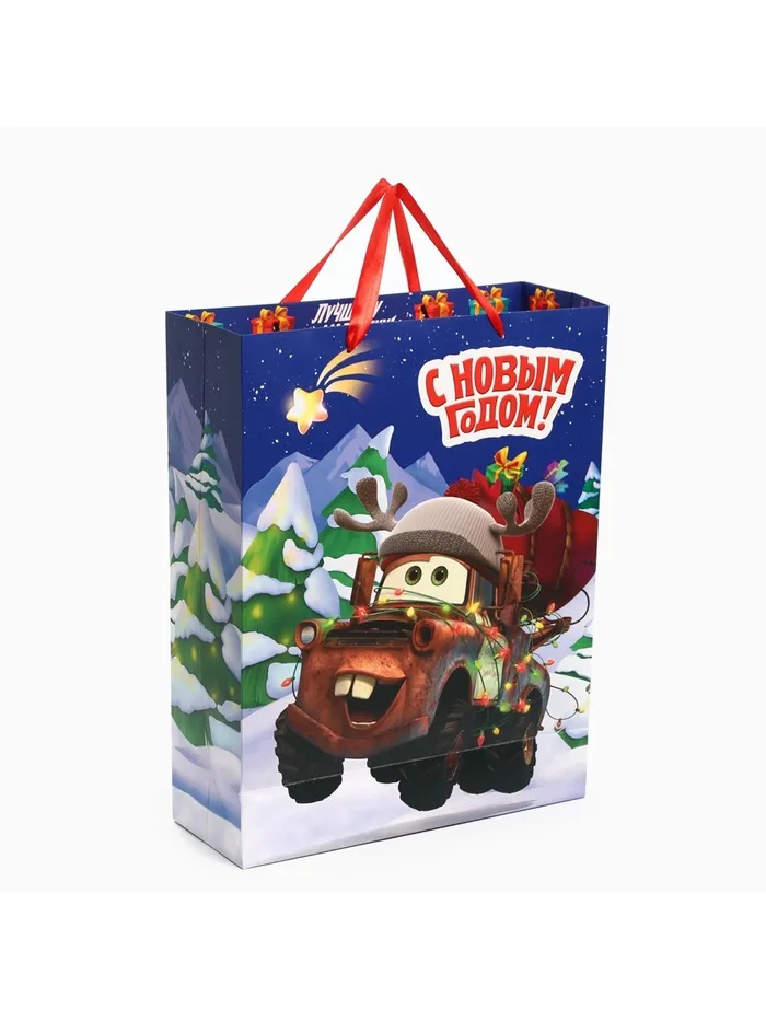 Пакет подарочный новогодний, 31 х 40 х 11.5 см, Тачки — Характеристики